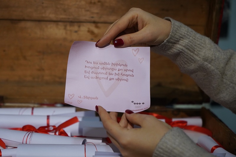 Թանգարանում տեղադրված տուփից բացիկ հանելով՝ այցելուները հնարավորություն ունեցան տերյանական խոստովանություններով արտահայտելու իրենց զգացմունքները։ Յուրաքանչյուր խոսք դառնում էր սիրո խոստովանություն՝ ստեղծելով քնքուշ ու երազային մթնոլորտ։ Այս տարի Գրականության և արվեստի թանգարանին էր միացել նաև «Բուկինիստ» գրախանութի «Գաղտնի գրքասեր» նախաձեռնությունը․ տերյանական էջանիշերը ոչ միայն գեղեցիկ նվեր դարձան գրքասերների համար, այլև նրանց ընձեռեցին թանգարանի անվճար շրջայցի հնարավորություն։